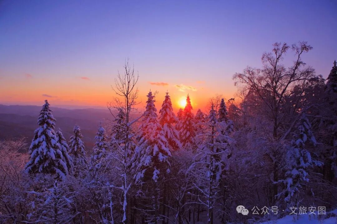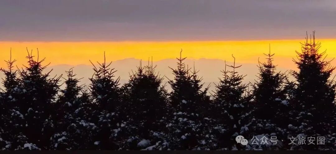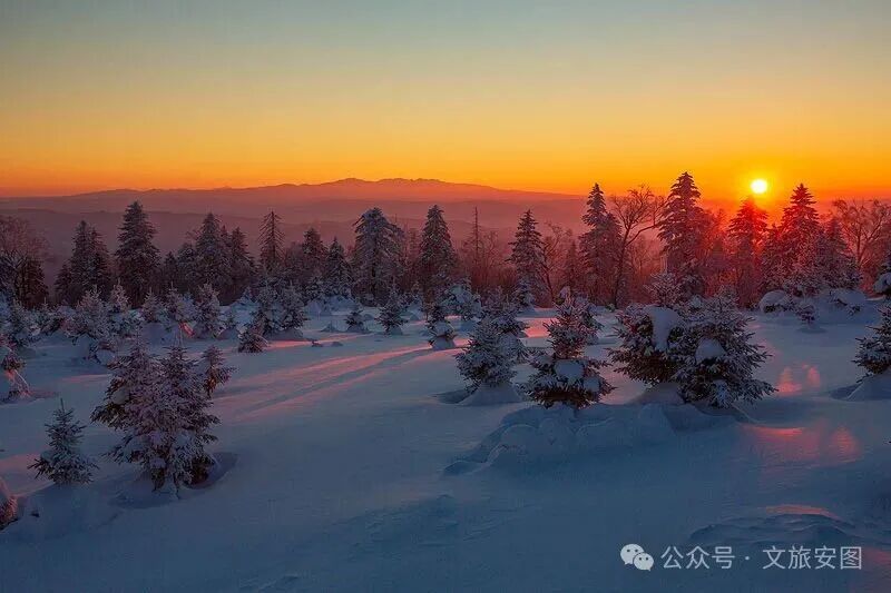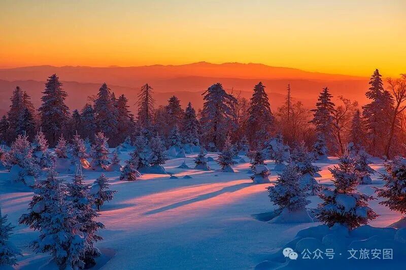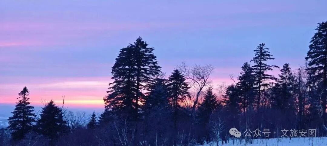 積雪接住了所有余暉。踩實(shí)的雪面揚(yáng)起細(xì)碎粉霧,遠(yuǎn)望霧凇帶如剪影,雪凇綴滿枝頭,折著粉光,像散落的碎鉆。