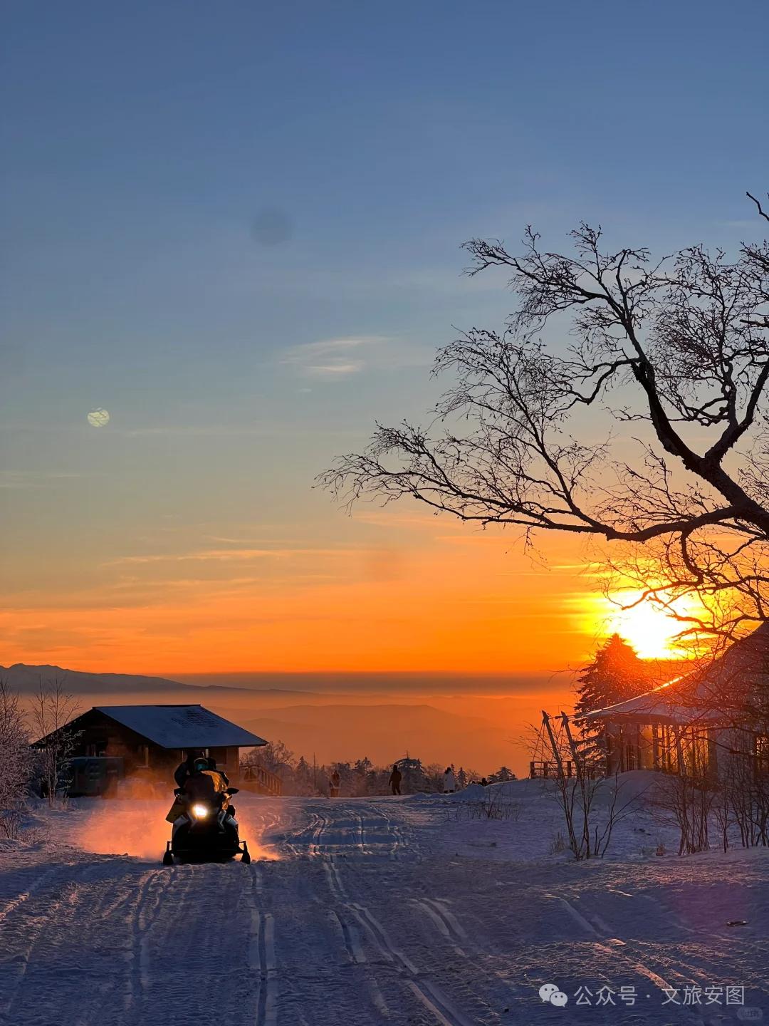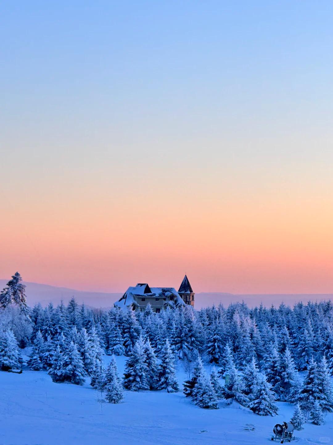 雪季漫長,粉雪蓬松,夕照落下來,先染透云,
