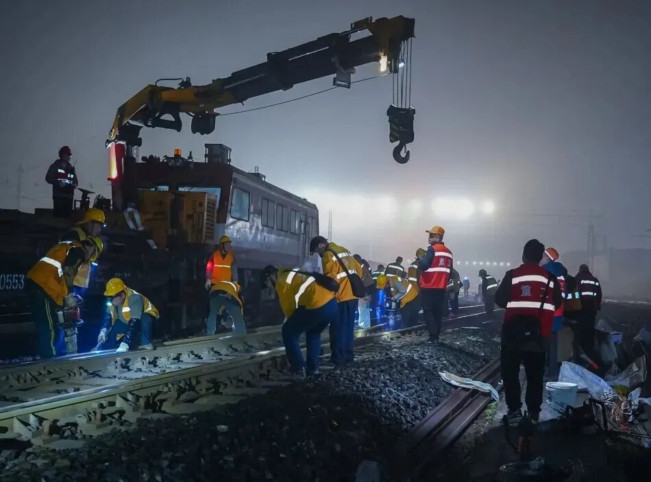 數(shù)百名作業(yè)人員利用列車運行間隙