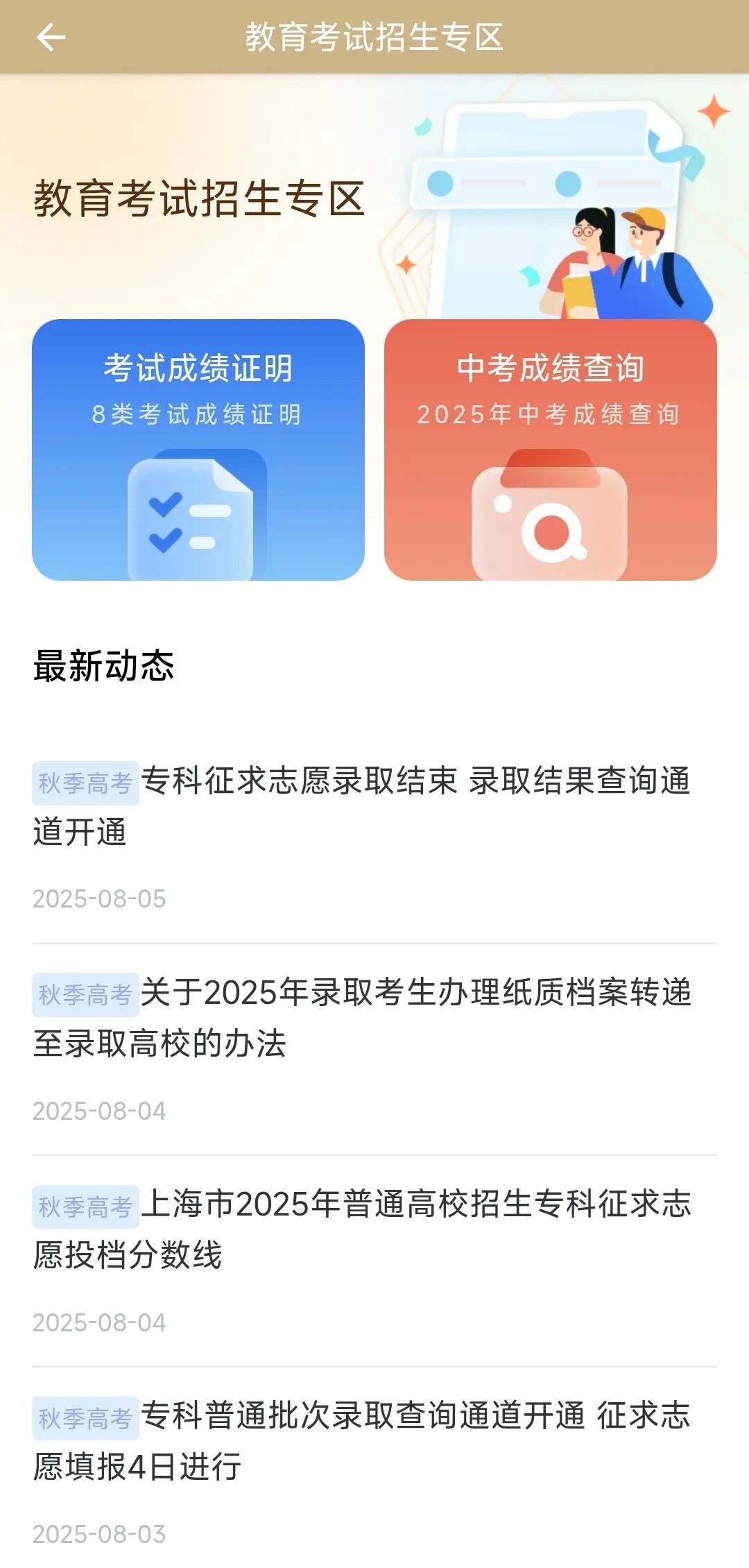 在專區(qū)內(nèi),家長能夠掌握最新的考試招生動態(tài),并且能夠查詢或打印考試成績證明。