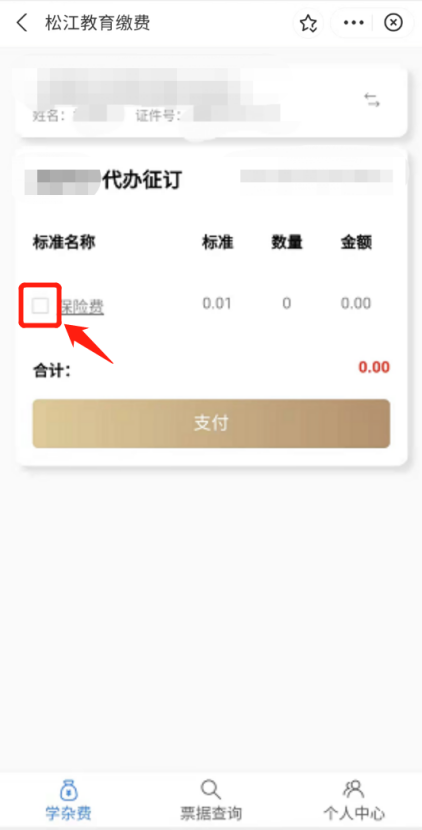 3、進(jìn)入繳費(fèi)頁面后,核對界面上方學(xué)生信息,并查看“學(xué)雜費(fèi)”菜單中需繳納的費(fèi)用批次信息,選中對應(yīng)繳納批次后,可查看具體繳費(fèi)項(xiàng)目及待繳金額。