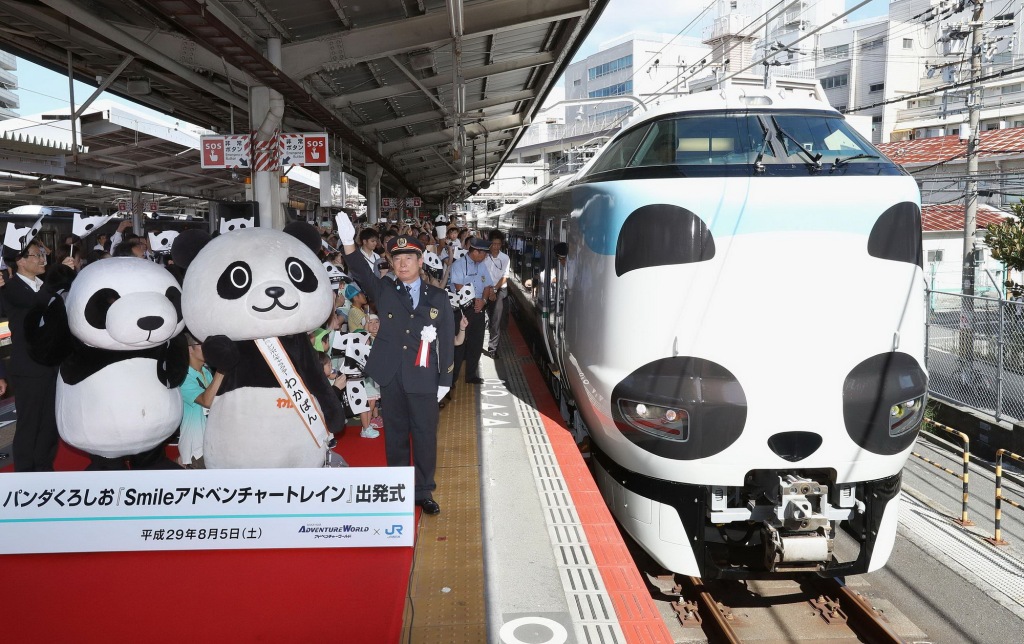2017年8月5日,日本大阪,西日本鐵路公司推出的大熊貓主題特快列車發(fā)車儀式舉行。列車連接京都、大阪和歌山縣南部。