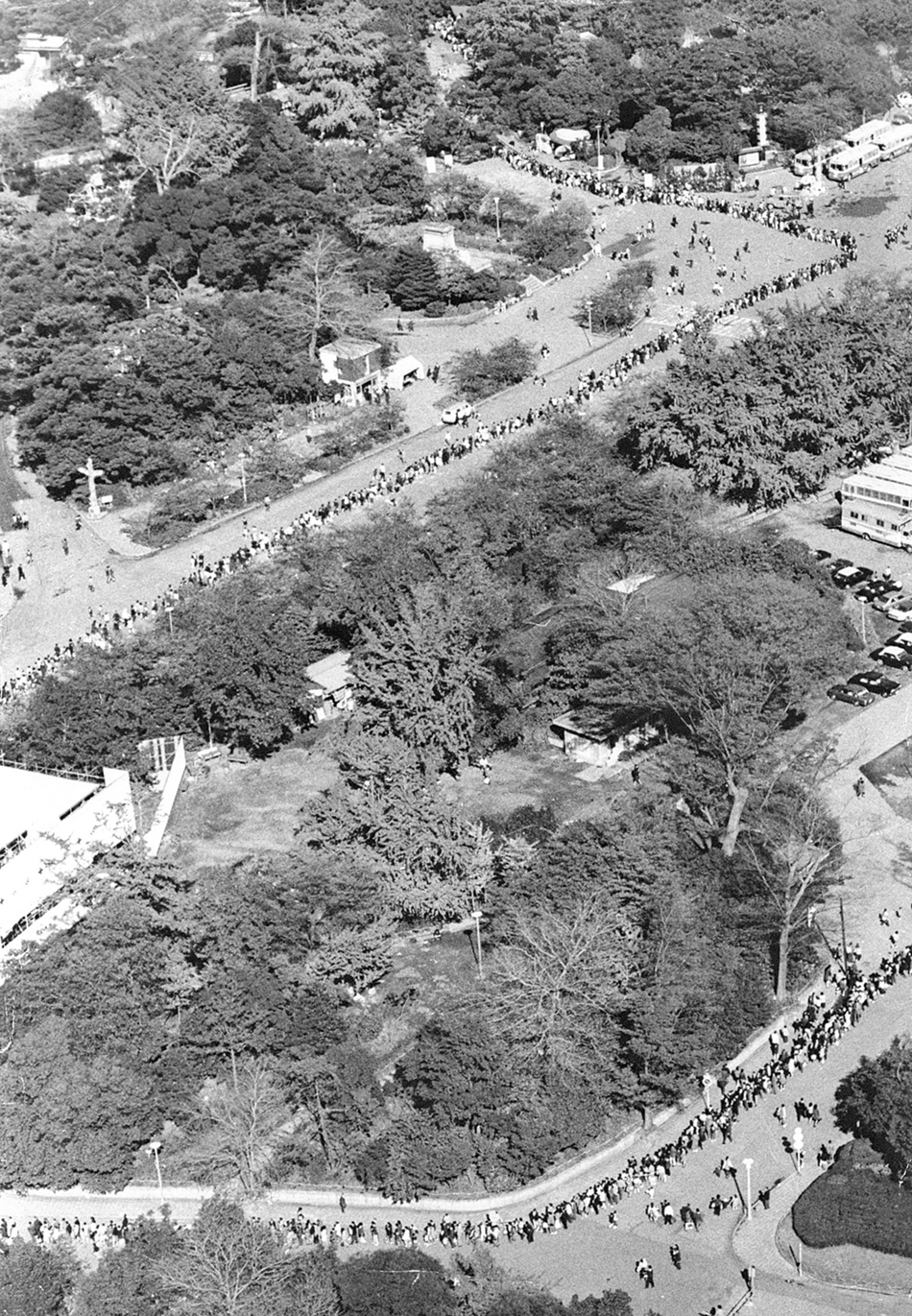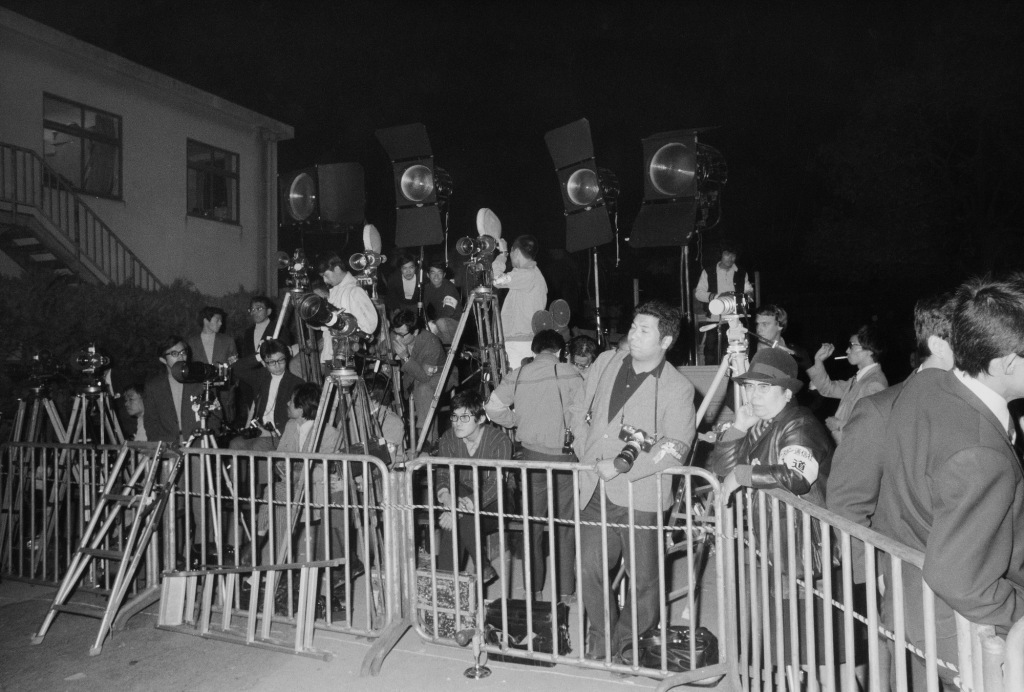 1972年10月28日,日本東京,眾多記者聚集在上野動物園門口等待大熊貓抵達(dá)。