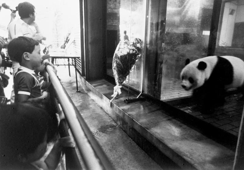 1980年,日本兒童給“蘭蘭”熊貓館獻(xiàn)上一束花,呆呆地觀看孤獨的“康康”。此前“蘭蘭”離世令孩子們痛惜,他們期盼新伙伴。新華社 圖