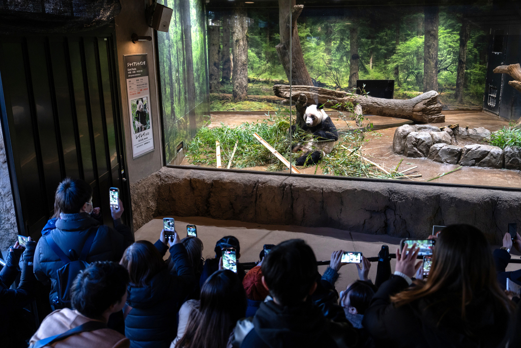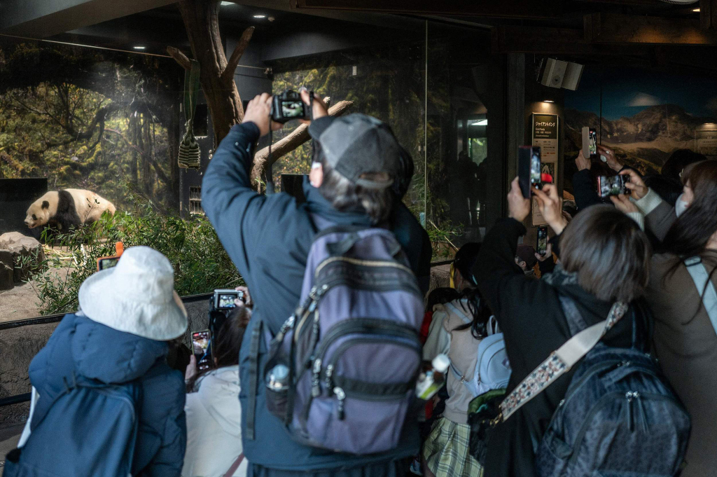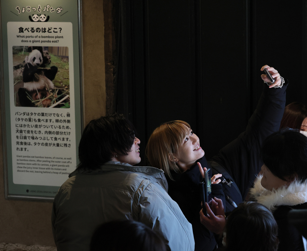 2026年1月25日,民眾在東京上野動物園與大熊貓合影告別。