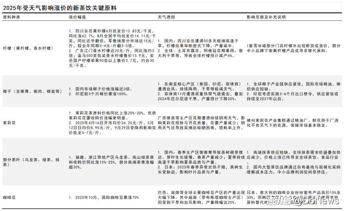 不過,行業(yè)過往的粗放式擴張,讓供應鏈體系短期內積累了諸多待解痛點。一方面,水果等原料本身損耗率較高,部分品牌為壓縮成本,刻意簡化冷鏈流程、延長倉儲周期,不僅進一步推高損耗,更有品牌出現(xiàn)以次充好的情況,短期內透支了行業(yè)信任;另一方面,全球極端天氣頻發(fā),對檸檬、咖啡、茶葉等核心原料的品質與價格穩(wěn)定構成不小考驗,給供應鏈帶來持續(xù)不確定性。
