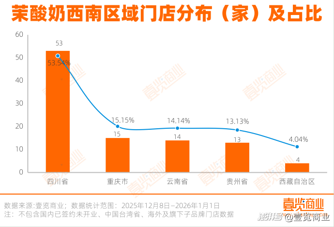 在西南區(qū)域,四川省以53家門店占據(jù)了半壁江山,重慶市、云南省、貴州省規(guī)模相當(dāng),西藏自治區(qū)僅有4家門店。