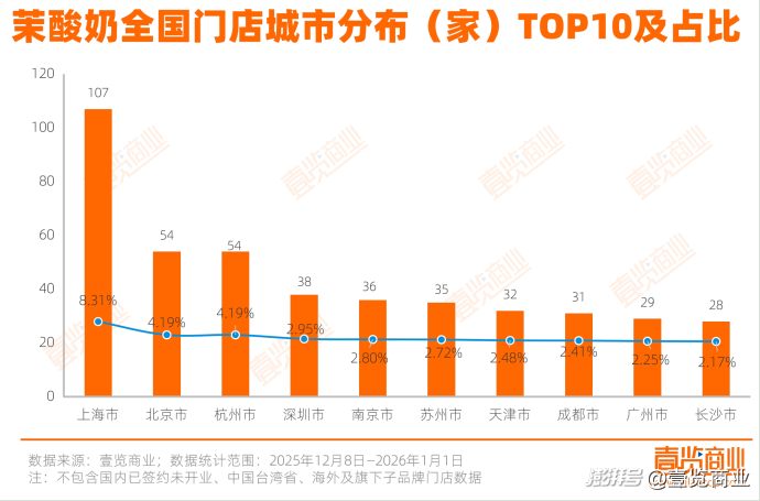 2025年,茉酸奶情況稍有好轉(zhuǎn),壹覽商業(yè)數(shù)據(jù)顯示,截至2026年1月1日,茉酸奶已在全國(guó)230個(gè)城市開出1288家門店,門店存量連續(xù)三個(gè)月增長(zhǎng)。