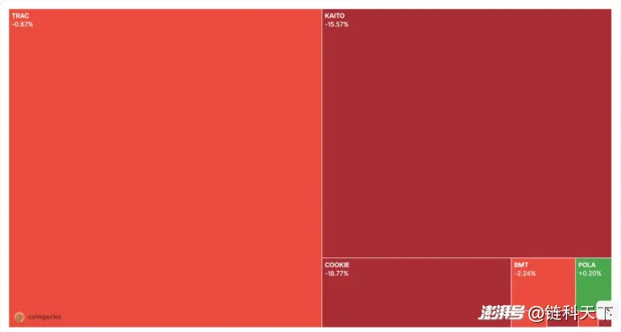 X平臺的“禁令”發(fā)布后,市場反應(yīng)迅如閃電。作為InfoFi賽道的龍頭項目,Kaito.ai的治理代幣$KAITO應(yīng)聲暴跌。其價格在短短數(shù)小時內(nèi)從0.7美元附近下跌至0.52美元,24小時跌幅超過20%。另一知名項目Cookie DAO的代幣$COOKIE也同步走低,整個InfoFi板塊市值在24小時內(nèi)蒸發(fā)超過12%。