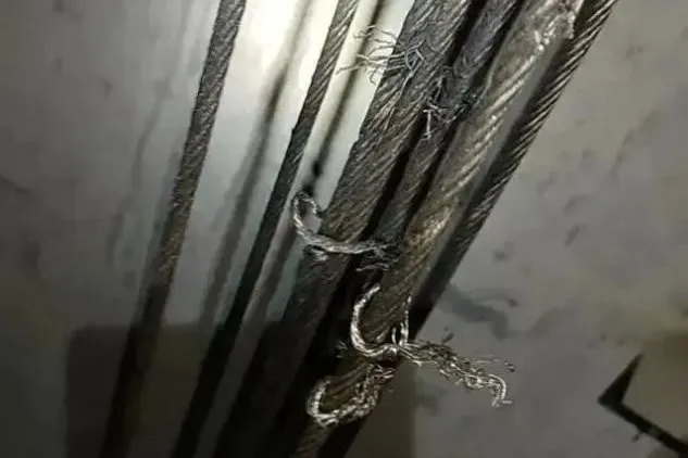 電梯曳引鋼絲繩遭人為切割的驚人一幕