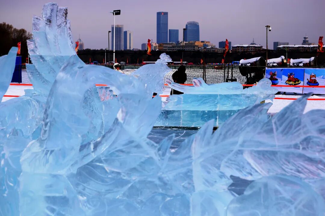 14位冰雕匠人,歷經(jīng)7個(gè)晝夜的精雕細(xì)琢,以寒冰為材,以匠心為魂,將凜冽的嚴(yán)冬淬煉為寂靜的藝術(shù)。