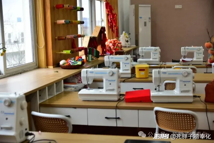 它同時也是一個活動教室,整齊擺放著幾臺頗為專業(yè)的電動縫紉機。