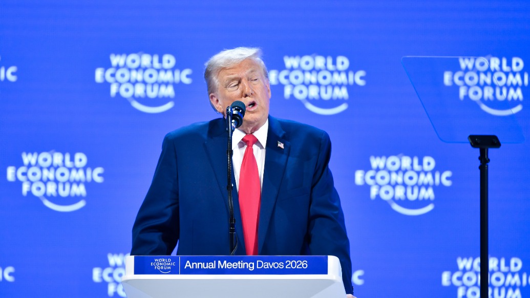 1月21日,美國總統(tǒng)特朗普在瑞士達(dá)沃斯舉行的世界經(jīng)濟(jì)論壇2026年年會發(fā)表演講。新華社 圖