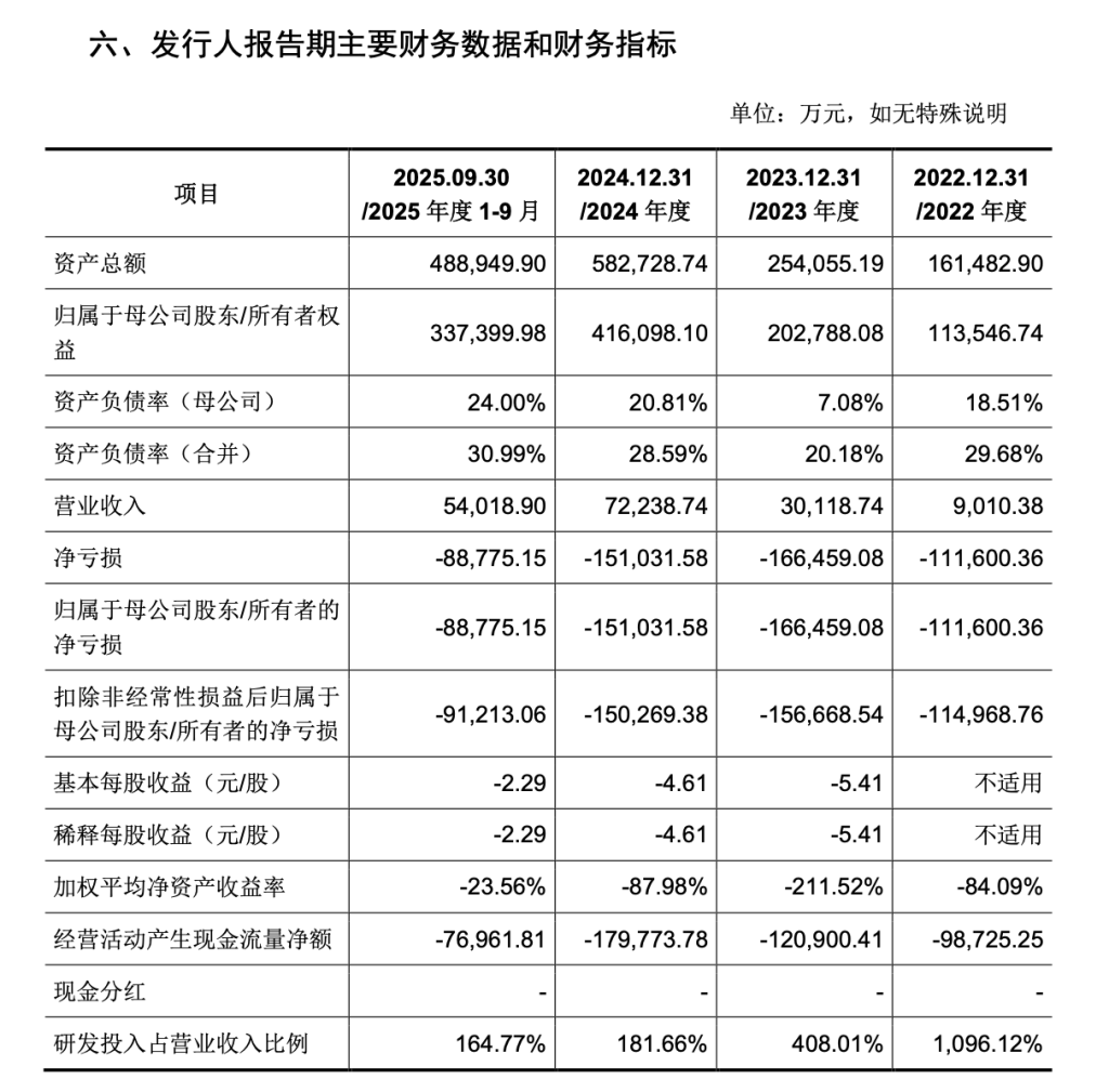 在2022年-2025年1月-9月份上述報(bào)告期內(nèi),燧原科技營(yíng)業(yè)收入分別為9010.38萬(wàn)元、 3億元、 7.2億元和5.4億元,扣除非經(jīng)常損益后凈利潤(rùn)分別為-11.5億元、-15.67億元、-15.03億元和-9.12億元,尚未實(shí)現(xiàn)盈利。隨著公司不斷技術(shù)迭代,產(chǎn)品不斷放量應(yīng)用,公司營(yíng)業(yè)收入從2022年到2024年復(fù)合增長(zhǎng)率達(dá)到183.15%,實(shí)現(xiàn)了快速增長(zhǎng)。