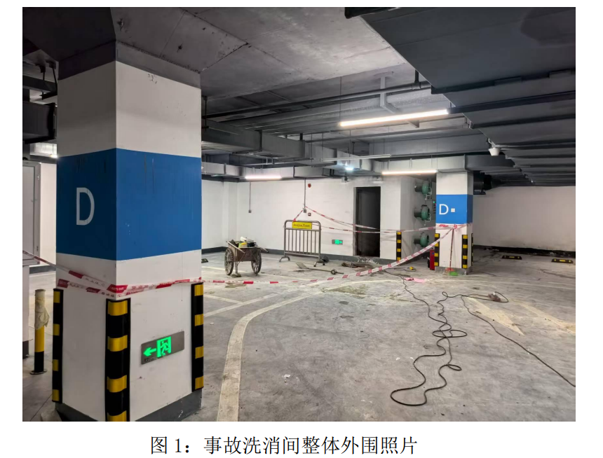 涉事項(xiàng)目于2022年交付使用,事故發(fā)生點(diǎn)位于萬象天地三期3棟負(fù)二樓防毒通道兼簡易洗消間集水坑。