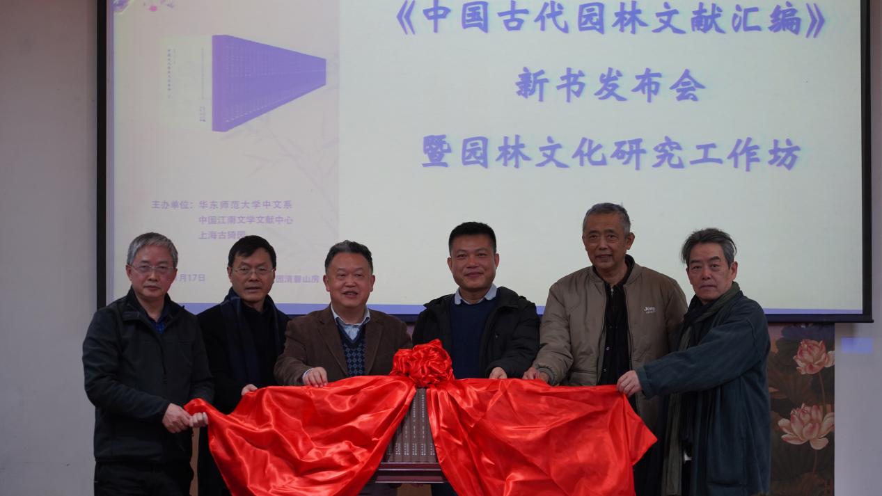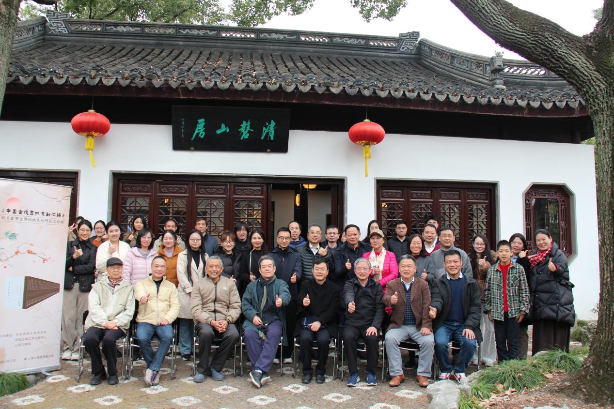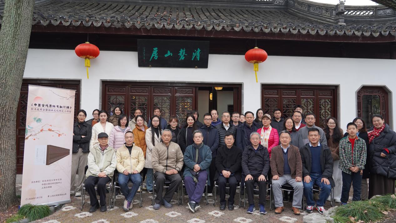 歲聿云暮,嘉會啟筵。2026年1月17日,由華東師范大學(xué)中文系、中國江南文學(xué)文獻(xiàn)研究中心、上海古猗園聯(lián)合主辦的“《中國古代園林文獻(xiàn)匯編》新書發(fā)布會暨園林文化研究工作坊”在上海古猗園清磬山房舉辦。來自復(fù)旦大學(xué)、同濟(jì)大學(xué)、華東師范大學(xué)、西北大學(xué)、西安建筑科技大學(xué)、浙江工商大學(xué)、中國美術(shù)學(xué)院、天津美術(shù)學(xué)院、南京藝術(shù)學(xué)院、蘇州園林和綠化管理局、上海古猗園等高校和單位的三十余位學(xué)者與研究生出席了會議。作為現(xiàn)存的上海五大古典園林之一,古猗園空間開闊,水域面積大,景致豐富,恰是園林“雖由人作,宛自天開”的生動詮釋。大家在此以書為媒,以園為境,將園林文獻(xiàn)與園林景致相互印證,共話園林文化的傳承之道。