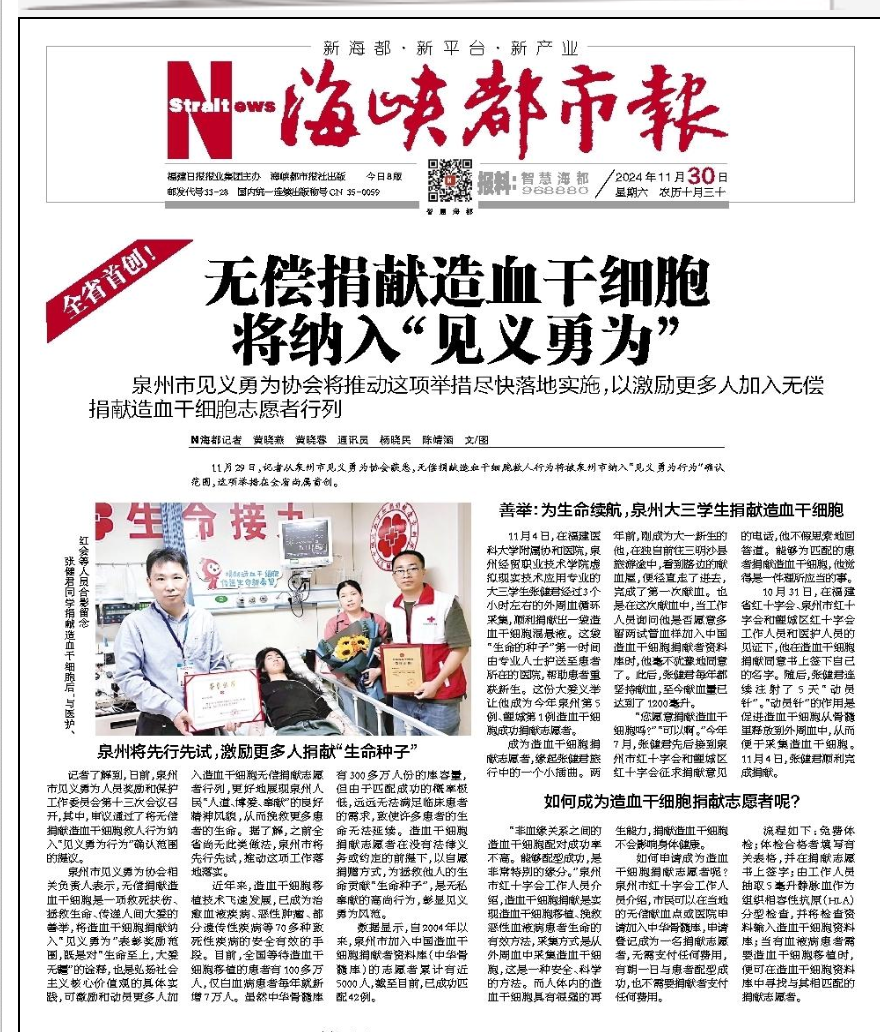 近年來,不少地方將人體器官和造血干細(xì)胞捐獻(xiàn)納入見義勇為的評定范圍,比如近日宣布的甘肅定西、廣東汕尾,去年宣布的河南漯河、山東濱州、湖北黃石等。還有的地方,僅僅是捐獻(xiàn)造血干細(xì)胞,也可以被確認(rèn)為見義勇為,比如江西贛州、山東青島、福建泉州、內(nèi)蒙古鄂爾多斯等地。除此之外,不斷有政協(xié)委員呼吁,將造血干細(xì)胞捐獻(xiàn)認(rèn)定為見義勇為行為,以激勵更多的人加入捐獻(xiàn)行列。