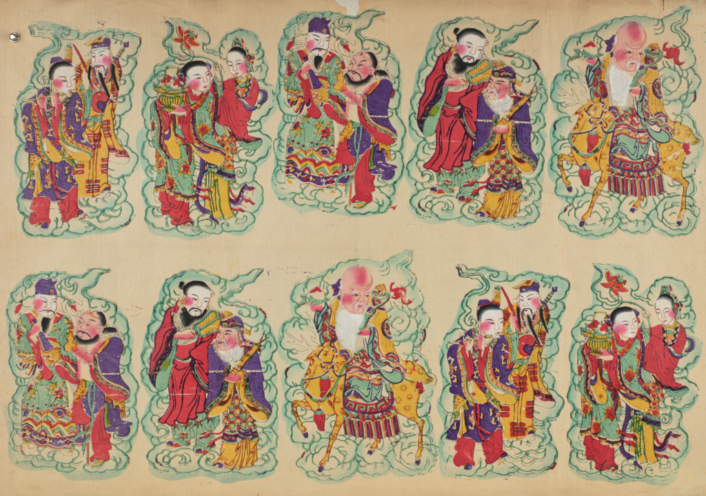 福、祿、壽、喜、財(cái)、安、吉、養(yǎng)、和、全,這十個(gè)尋常而又深邃的漢字,凝聚著中國(guó)人對(duì)圓滿生活的全部想象。它們化身于諧音之趣(魚寓“余”)、形態(tài)之喻(桃代“壽”),更活躍在畫面的敘事里(猴騎馬,意“馬上封侯”)。它是一個(gè)民族樂(lè)觀而堅(jiān)韌的生活哲學(xué):用柔軟的文化,消化堅(jiān)硬的現(xiàn)實(shí);用美好的想象,照亮平凡的日子。這些跨越時(shí)光的畫面與符號(hào),連接著我們的來(lái)路,也溫暖著我們的前程。