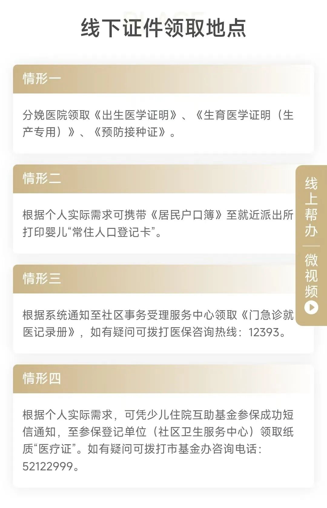 代辦人可攜帶出生醫(yī)學(xué)證明、本市戶籍父親或母親的居民戶口簿、代辦人身份證至就近的社區(qū)事務(wù)受理服務(wù)中心辦理參保手續(xù);待完成新生兒戶口申報(bào)手續(xù)后,可攜帶出生醫(yī)學(xué)證明、新生兒所在居民戶口簿、代辦人身份證至就近的社區(qū)事務(wù)受理服務(wù)中心辦理證件更正業(yè)務(wù),并在“國(guó)家醫(yī)保服務(wù)平臺(tái)”APP進(jìn)行新生兒親情賬戶醫(yī)保碼的解除綁定和重新綁定,以保障后續(xù)就醫(yī)體驗(yàn)。