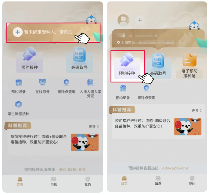 2、綁定受種人信息,選擇“預(yù)約接種”。