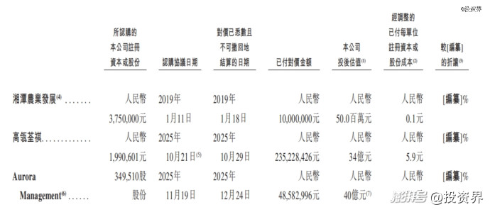 其實早在2019年,湘潭國資就曾投資桑尼森迪。目前,湘潭國資通過旗下湘潭農(nóng)業(yè)發(fā)展持股9.14%。就在一個月前,Aurora Management以4858萬元入股,公司估值也攀升至40億元。