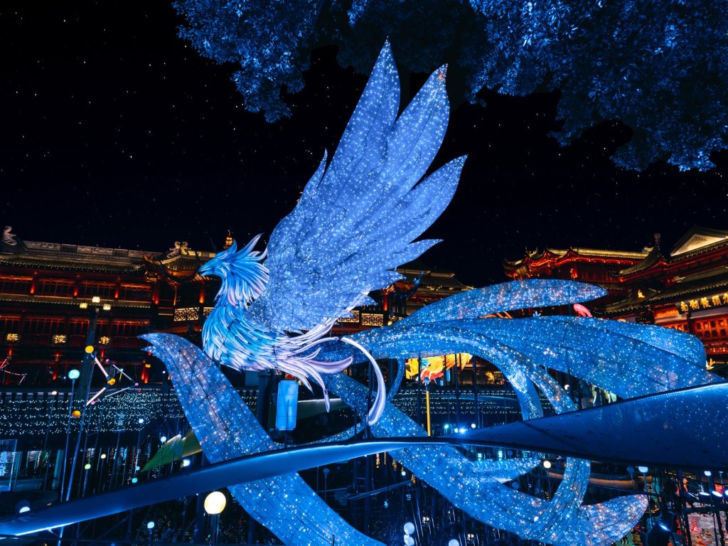 主辦方介紹,今年燈會(huì)的另一大亮點(diǎn)是傳統(tǒng)與科技的深度融合,特別設(shè)置了數(shù)字光影互動(dòng)。九曲橋每日定時(shí)上演“數(shù)字光影流光奇旅”,融合“二十八星宿”文化與“山海奇豫記”IP,以瑞獸朱雀為核心,演繹星宿神話。游客還能通過(guò)手機(jī)召喚AI神獸“胐胐”智能伴游,享用大豫園賞燈游玩數(shù)字化導(dǎo)航、通過(guò)AI拍照體驗(yàn)“人在燈中游”專(zhuān)屬非遺場(chǎng)景、參與“數(shù)字燈謎,邊走邊猜”互動(dòng)游戲等。