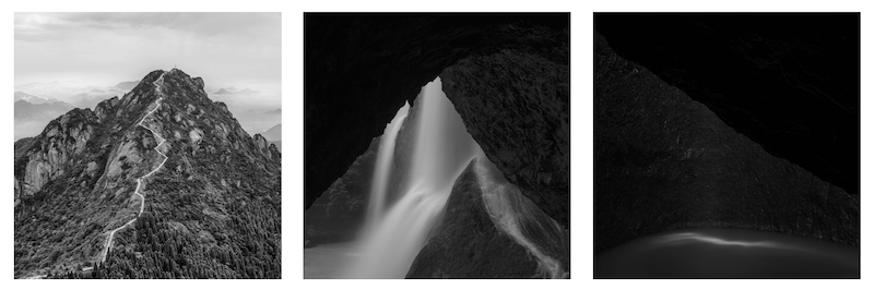 “林風低語”板塊位于靈巖景區(qū)附近的雁蕩書院,以攝影、裝置與雕塑為媒介,以“山水的自語”為線索展開敘事。步入展廳,一組上世紀四十至六十年代的雁蕩歷史影像與多件當代攝影作品被并置陳列。不同時代的鏡頭于此靜默地對照,它們之間僅相隔數(shù)米,卻構建起一處跨越八十年連接往昔與當下的廊室。