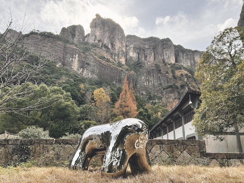 最后的“天風無垠”板塊為展覽的特別板塊,由三組裝置作品組成,散落在雁蕩山三處戶外空間之中。主辦方希望觀眾能夠在行走中不經意地與其“偶遇”,放下把藝術作品當作“對象”來觀看的執(zhí)著,讓作品與自己從山里出發(fā),終又回到風中。