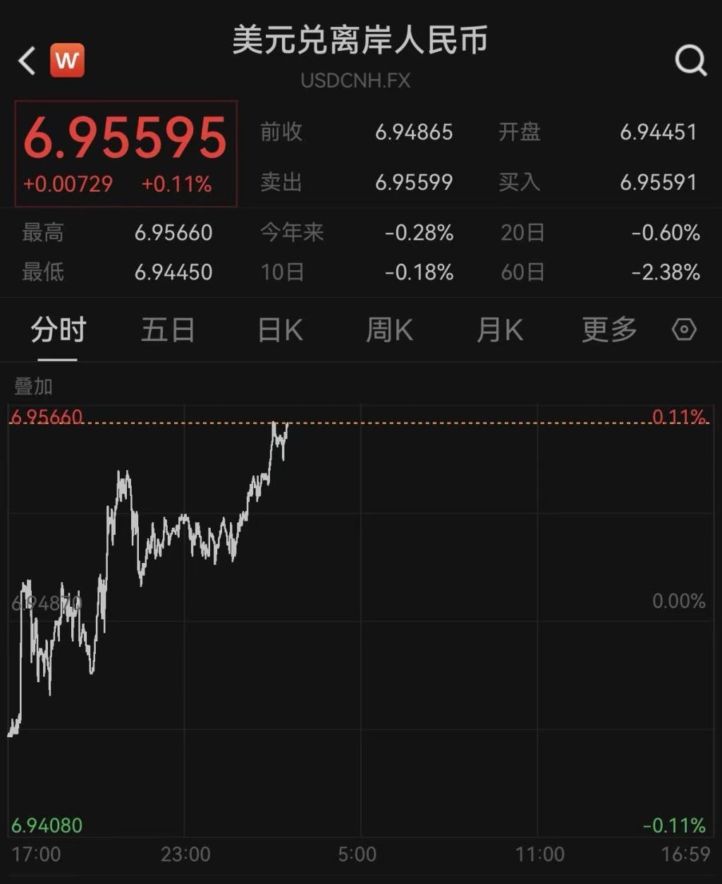 在離岸市場(chǎng)上,1月26日,更多反映國(guó)際投資者預(yù)期的離岸人民幣對(duì)美元匯率1月26日盤中最高升至6.9445,創(chuàng)下2023年5月13日以來的新高,隨后離岸人民幣走弱并跌破6.95關(guān)口。