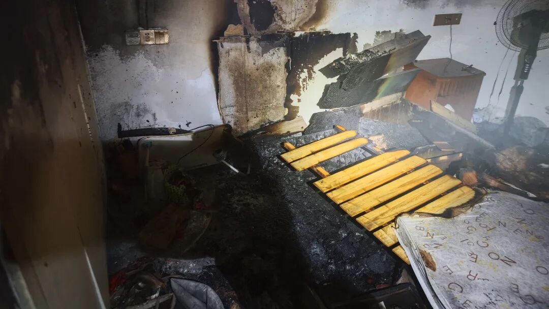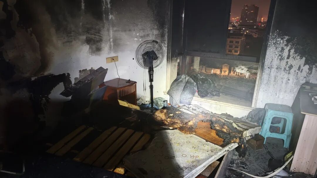 火災(zāi)撲滅后的臥室。圖源:浙江消防