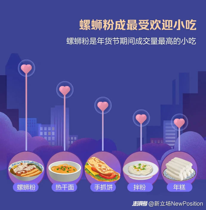 彼時(shí)的“超級網(wǎng)紅”螺螄粉成為最暢銷小吃,其后的熱干面、手抓餅、拌粉、年糕等都有地方特色。