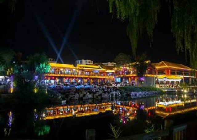 旅游旺季,甘泉公園門前的小舞臺總是被游客圍得水泄不通?!盀榱宋慰停?0多名員工全都上陣參演,就是想讓老街的夜晚熱鬧起來?!睆堃唇鸱课幕糜谓ㄔO投資有限責任公司相關負責人說。