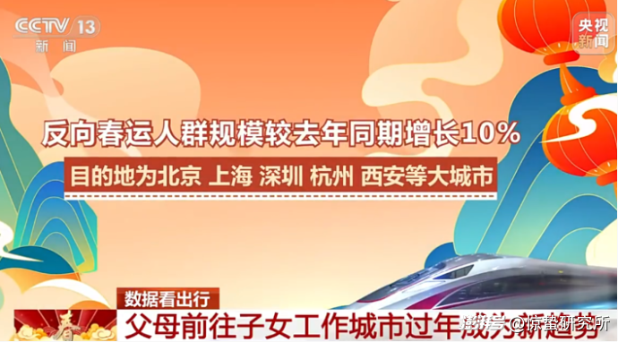 央視新聞的數(shù)據(jù)顯示,父母前往子女工作城市過年已經(jīng)成為新趨勢。去年春節(jié),反向春運人群規(guī)模較前年同期增長10%,60周歲及以上人群出行量同比增長近30%。其中,北京、上海、深圳等一線城市成為主要目的地。而伴隨“父母進城,子女接駕”模式的普及,不僅緩解了春運壓力,更催生出本地文旅、適老化消費、家庭服務(wù)等一系列新場景。