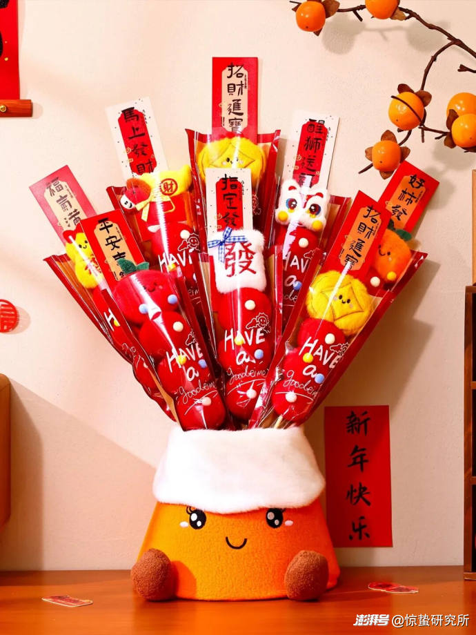 曾經(jīng)的年宵花市場以水仙、臘梅等傳統(tǒng)花卉為主,如今則涌現(xiàn)出“柿柿如意”仿真花束、發(fā)光蝴蝶蘭、多肉盆栽組合等新品類,既保留“吉祥寓意”的核心,又兼顧易養(yǎng)護、高顏值的需求;而造型討喜、寓意美好的新春福桶,更憑借高適配度和自帶的DIY互動屬性躋身電商平臺的“年貨頂流”,成為年輕群體裝點家居的新選擇。