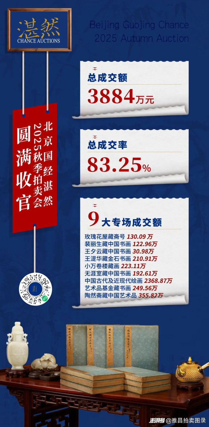北京國(guó)經(jīng)湛然2025秋拍戰(zhàn)報(bào):總成交額3884.37萬(wàn)元,總成交率83.25%