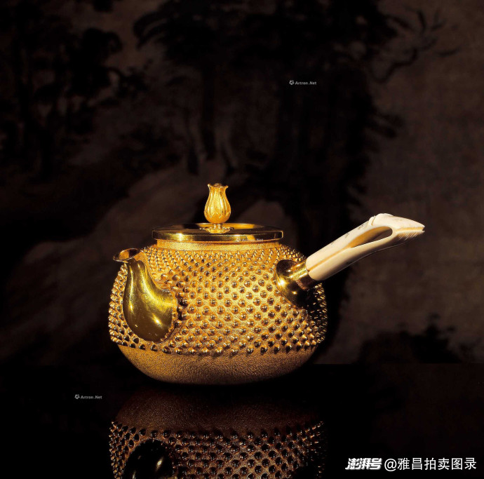 金質(zhì)乳釘紋題字柄茶壺
