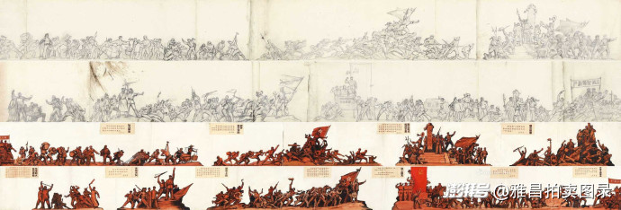 陳逸飛等 《井岡星火—大型雕塑稿》彩稿 素描稿