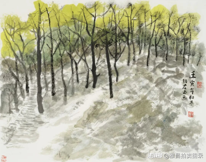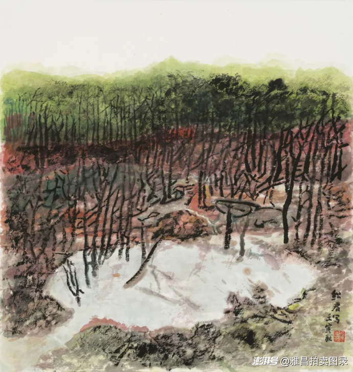郎紹君 《林中泉影》 設(shè)色紙本 45cm×47cm