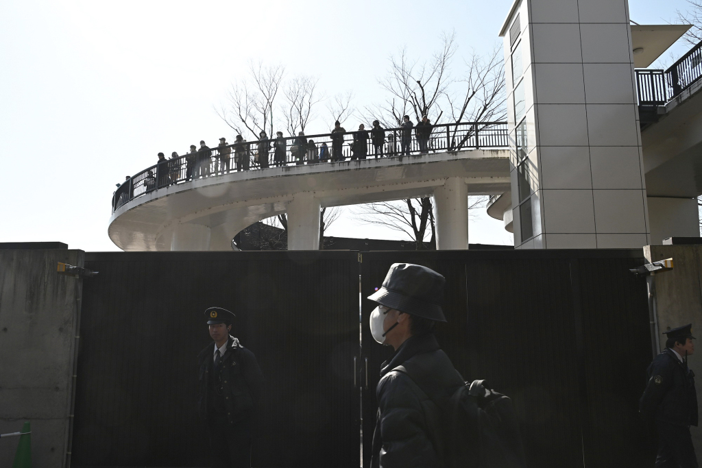 1月27日,日本東京,人們聚集在天橋上為“曉曉”和“蕾蕾”送行。