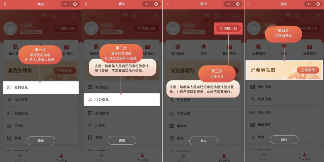 按要求準確填寫“我的信息”“代辦信息”,完成信息填寫并提交后,點擊“切換人員”進行切換。點擊“立即領(lǐng)取”即可領(lǐng)取消費券。