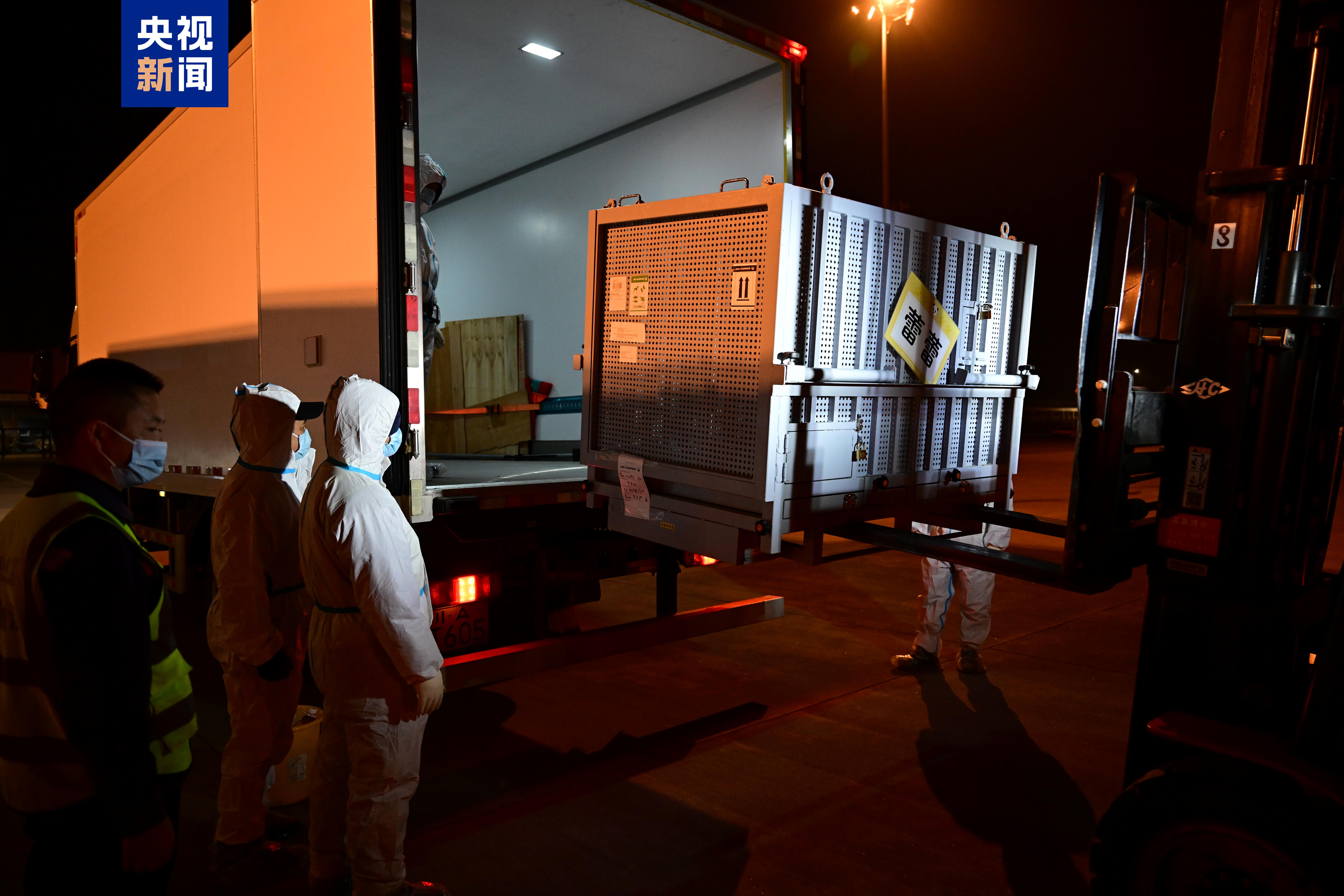旅日大熊貓“曉曉”“蕾蕾”裝運(yùn)上車