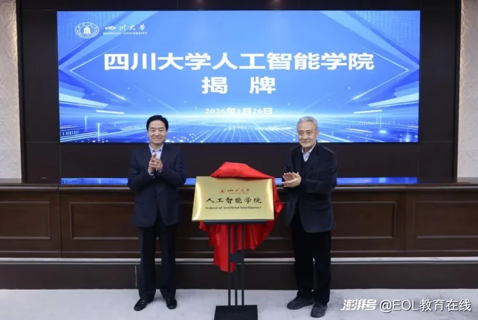 1月26日,四川大學人工智能學院揭牌儀式在望江校區(qū)明德樓舉行。四川大學黨委書記甘霖、校長汪勁松等全體校領(lǐng)導,各單位主要負責人,師生代表等參加儀式。甘霖、汪勁松為“四川大學人工智能學院”揭牌。