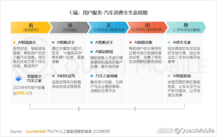 1.5 針對用戶汽車消費全生命周期,以汽車之家案例來看,其以AI智能助手插件為起點,將AI技術(shù)全面滲透至各環(huán)節(jié),驅(qū)動用戶體驗升級