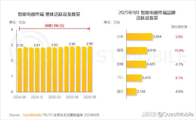 2.3 2025年的智能電視市場正在政策引導和用戶體驗升級的雙重驅(qū)動下,走向一個更健康、更有活力的發(fā)展階段,智能電視活躍設備突破2.9億臺,近一年凈增近1200萬臺