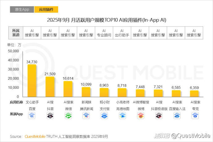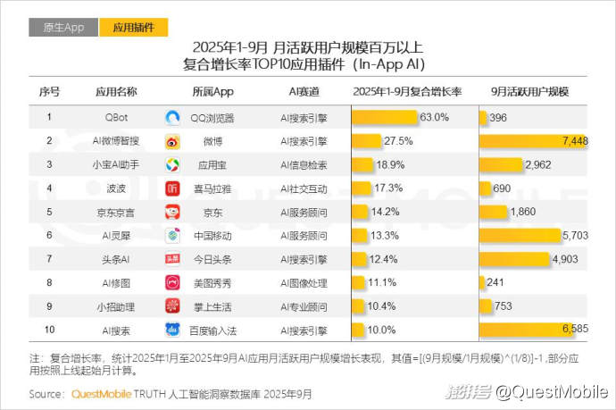 1.2 趨勢上,來自載體App加持的AI應用插件,擁有更低的用戶獲取成本,表現(xiàn)出相對更強的增長勢頭,其9月活躍用戶突破7億大關(guān)