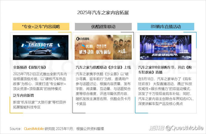 3.5 汽車之家內(nèi)容生態(tài)從“專業(yè)垂直”向“專業(yè)+泛化+互動”融合轉(zhuǎn)型,并通過跨平臺合作、直播及KOL聯(lián)動,強化品牌影響力