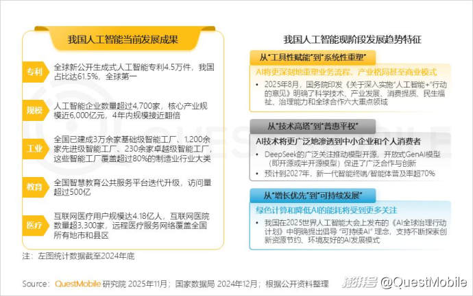 1、 AI產(chǎn)業(yè)發(fā)展現(xiàn)狀及應用概況:從單點技術(shù)突破邁向系統(tǒng)化生態(tài)賦能