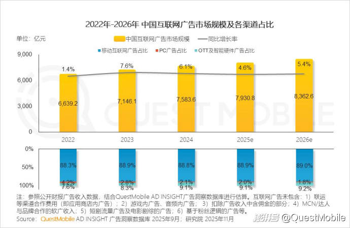 1.1 互聯(lián)網(wǎng)平臺創(chuàng)新與業(yè)務競爭等因素推動下,2025年中國互聯(lián)網(wǎng)廣告市場規(guī)模保持溫和增長