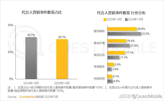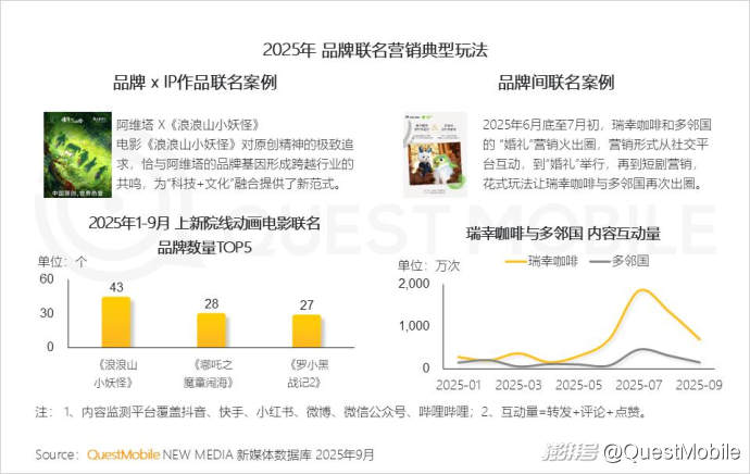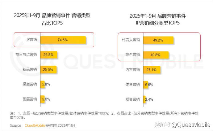 QuestMobile數(shù)據(jù)顯示,2025年1-9月聯(lián)名營銷事件中,品牌與IP聯(lián)名的占比同比增加24.1個百分點。