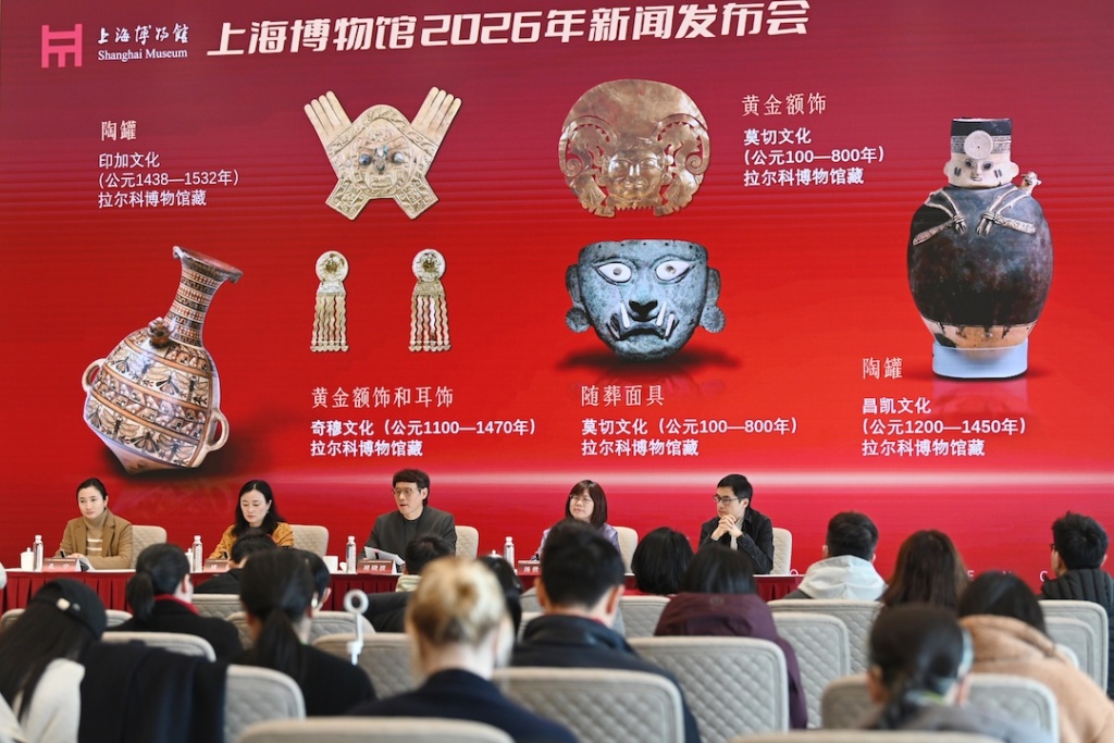 除了當(dāng)下正在展出的“融古爍新:宋元明清銅器的復(fù)古與創(chuàng)新”、“摩登華影:海派旗袍與百年時(shí)尚”等展覽,將重磅呈現(xiàn)“世界樹之巔:美洲古代文明大展”和“肇興中國:秦·大一統(tǒng)之路文物考古特展” ,分別作為上博“對(duì)話世界”和“何以中國”系列的新展;在書畫方面,2026年底,上博將重磅呈現(xiàn)“大音希聲:八大山人誕辰400周年書畫藝術(shù)大展”,是上博繼“董其昌大展”之后,又一次全球總動(dòng)員式的書畫藝術(shù)盛宴。此外還有“從莎士比亞到J.K.羅琳:英國文學(xué)家肖像與名跡展” 、“金冠之下:新羅文物精華展”、“來自喜馬拉雅的瑰寶:西藏薩迦寺文物精品展”等新展也值得期待。